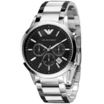 Original Emporio Armani Watch Renato for Men AR2434 Black dial Strap Metal belt with Silver color