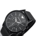 Original Emporio Armani Watch Renato Large for Men AR2498 Black dial . Metal belt Strap with Black color . With Packing Armani Box + Bag
