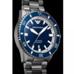 Original Emporio Armani Automatic watch for Men Sea Explorer AR60079 Blue dial , Silver Metal Strap