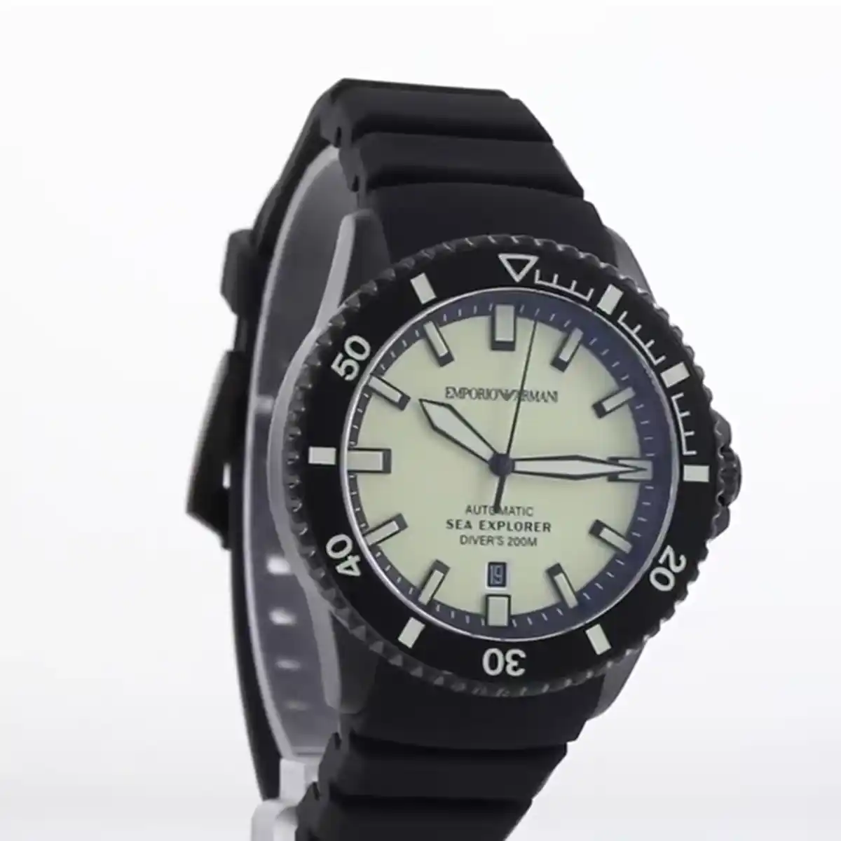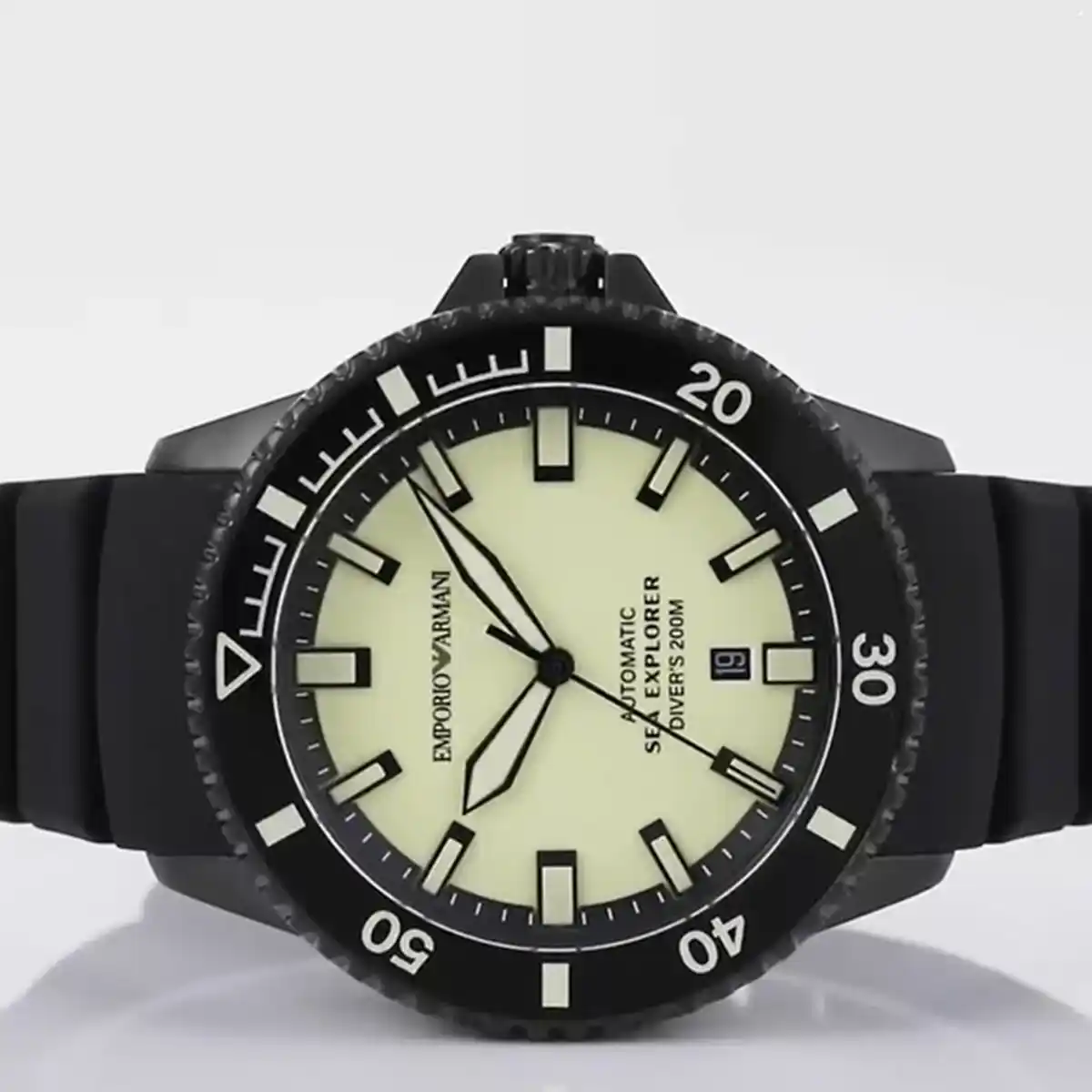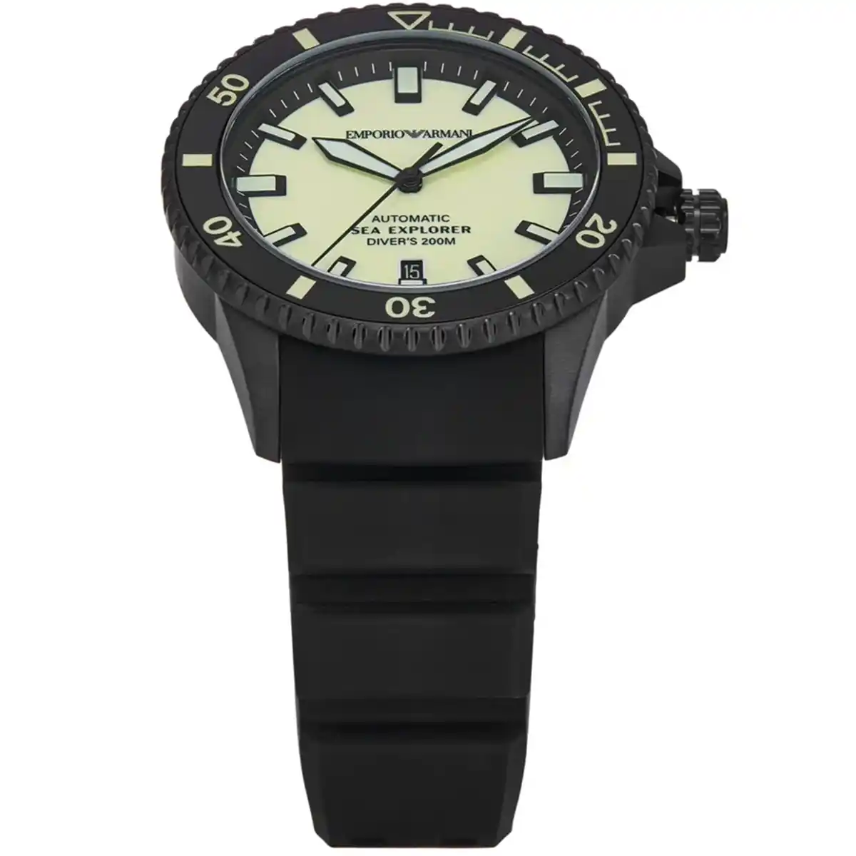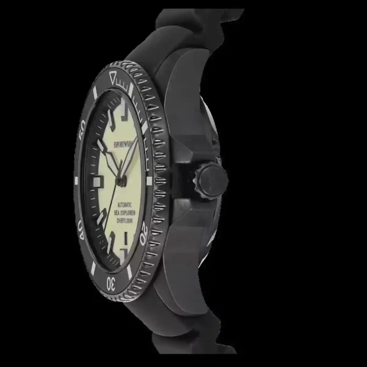 Original Emporio Armani Automatic watch for Men Sea Explorer AR60085 Yellow dial , Black Rubber Strap