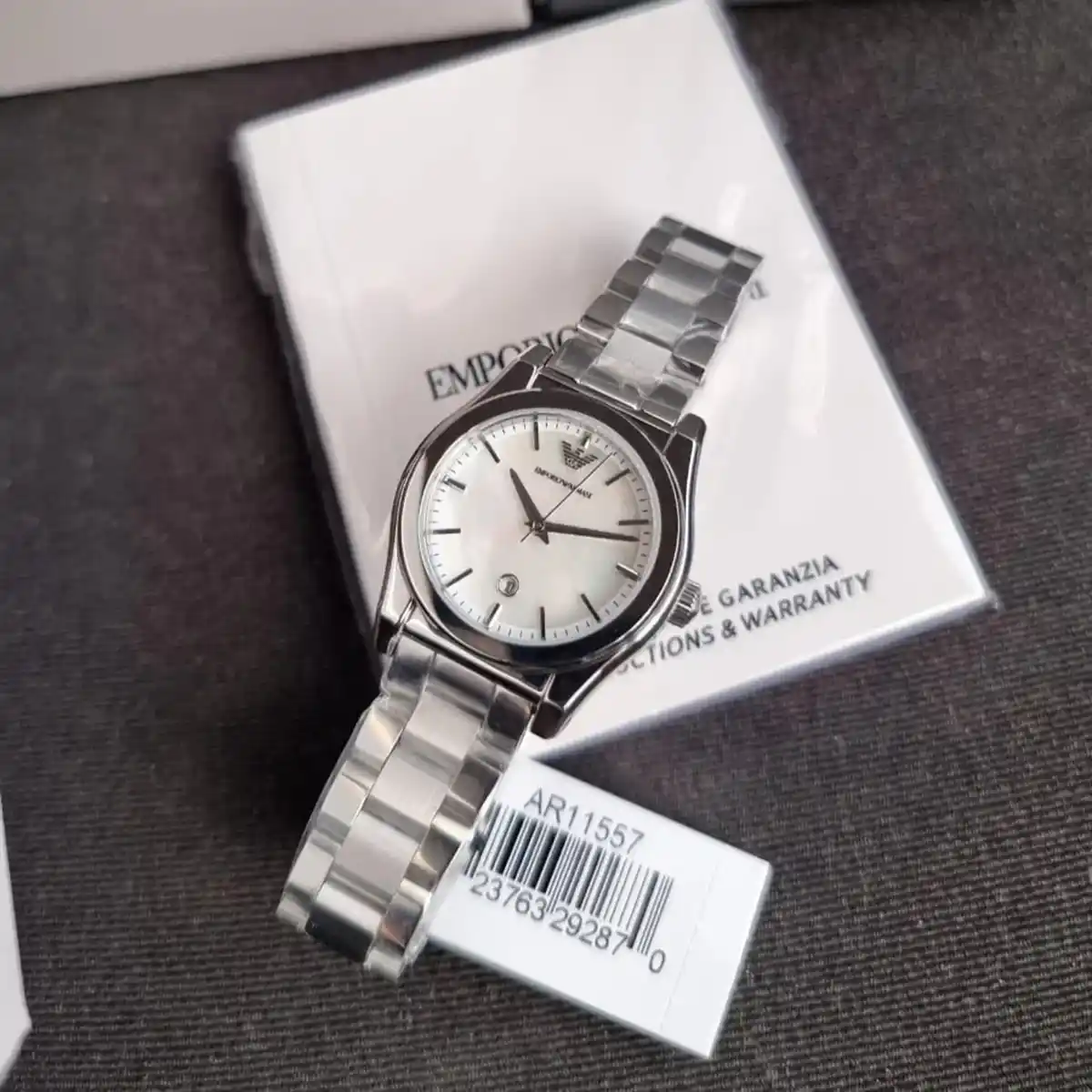 Original Emporio Armani watch for Ladies Fredrica AR11557 Mother Of Pearl dial , Silver Metal Strap