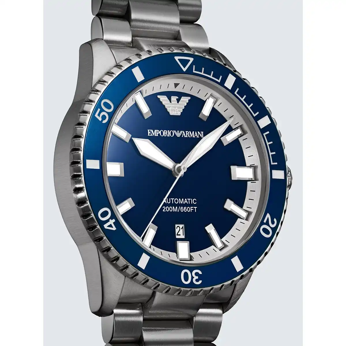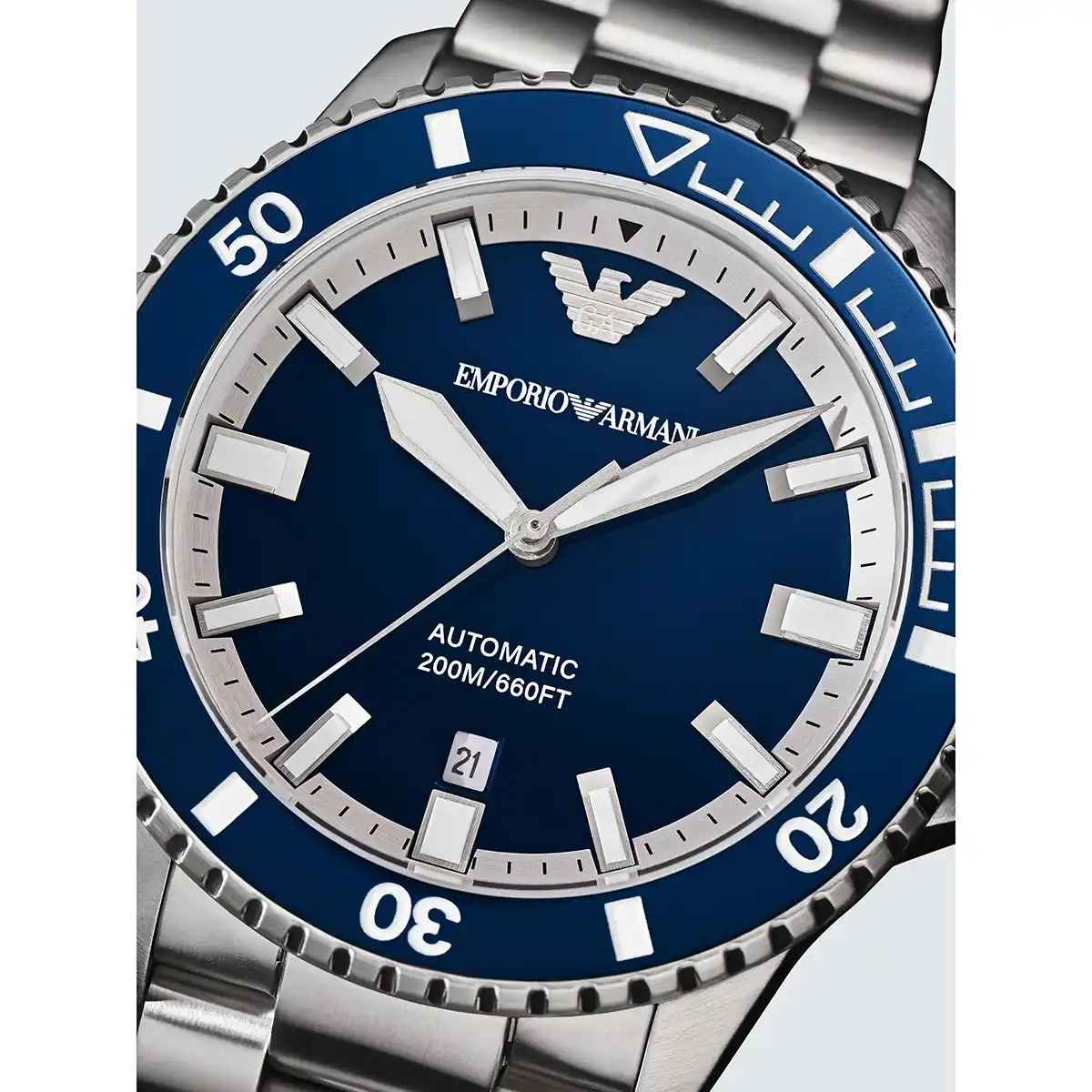 -7%Original Emporio Armani Automatic watch for men Sea Explorer AR60087 Blue dial , Silver Metal Strap