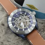 Original Fossil Watch Machine for men ME3135 Blue dial Strap Leather Belt with Black color . With Packing Fossil Box + Bag