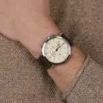 Original Fossil Watch Forrester for men FS5696 Off White dial Strap Leather Belt with Brown color . With Packing Fossil Box + Bag