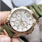 Original Guess Watch Army for Ladies W0325L5 White dial Green Rubber Golden Metal Strap Belt . Japanese Machine . With packing Guess ( Box + Bag )