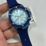 Original Guess Watch Poseidon for men GW0057G3 With Light Blue dial Rubber Strap Blue color Belt . Japanese Machine With packing Guess  Box + Bag