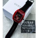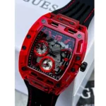 -7%Original Guess Watch Phoenix for Men GW0499G4 Red dial Black Rubber Strap Belt . Japanese Machine . With Original Guess packaging ( Box + Bag )