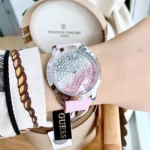 -9%Original Guess Watch Vibrant Charm for Ladies W1223L1 Pink & Silver dial Pink Rubber Strap Belt . Japanese Machine . With packing Guess ( Box + Bag )