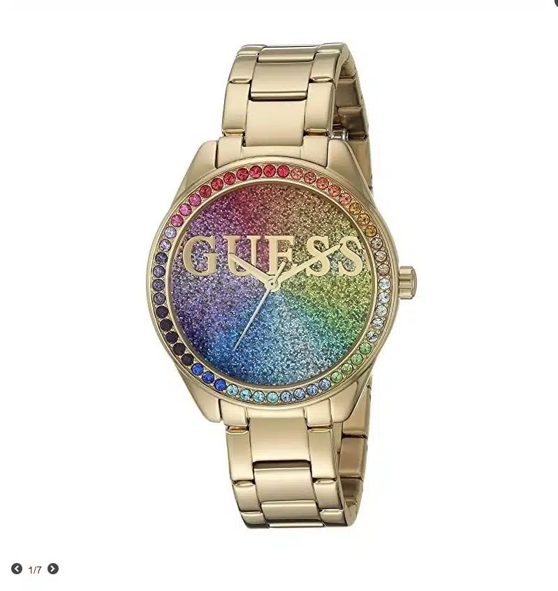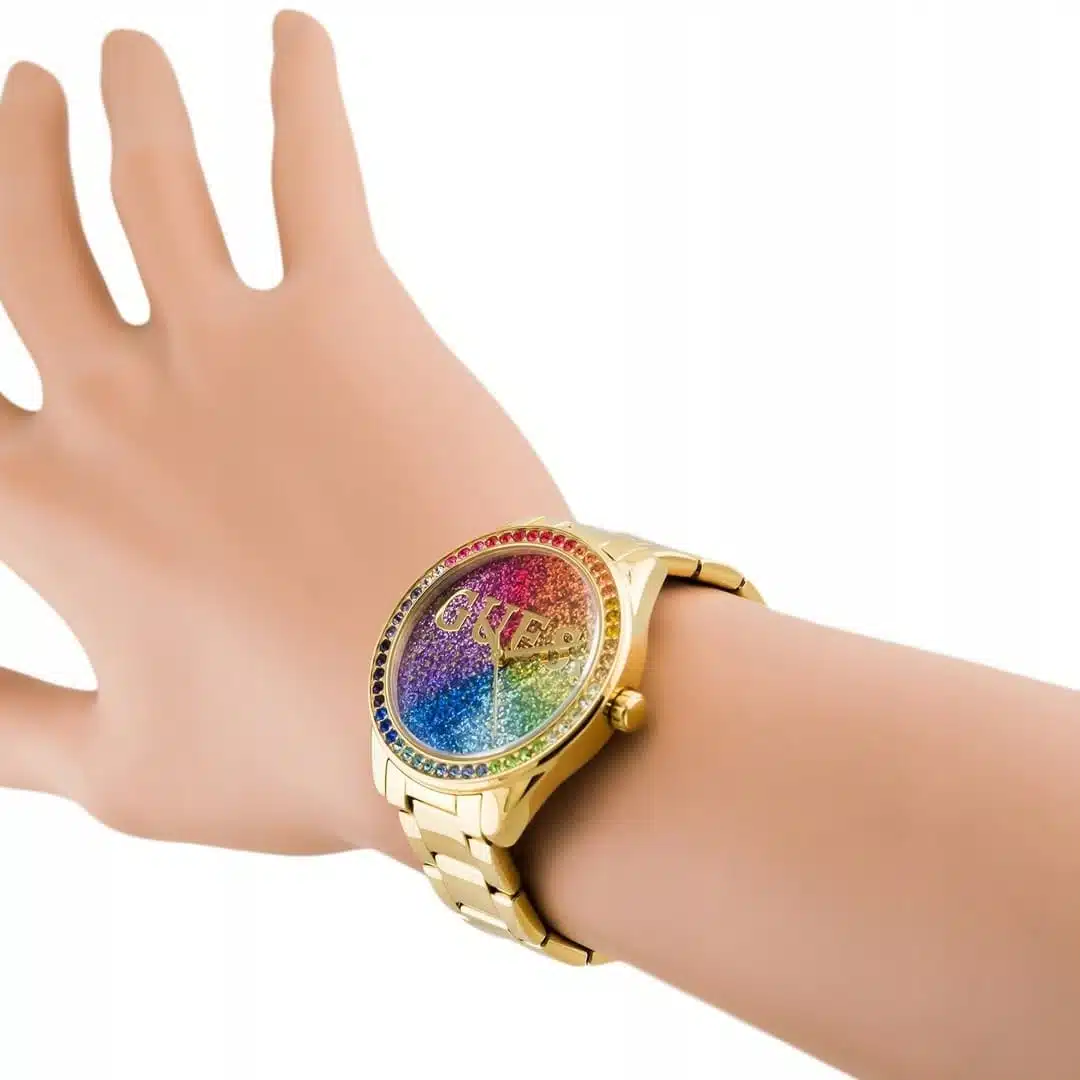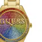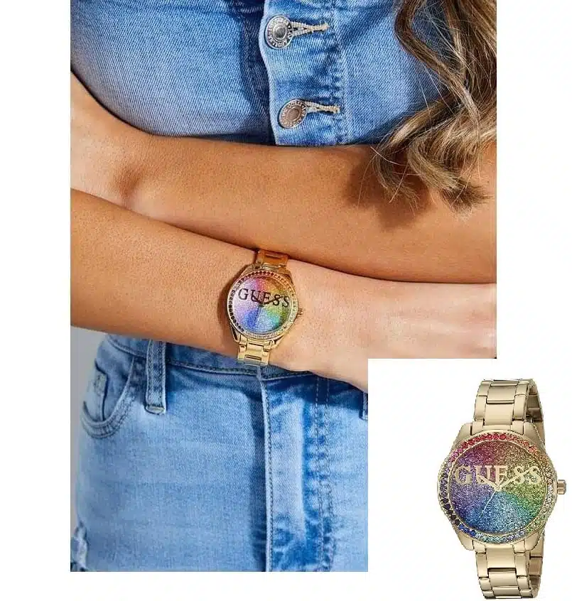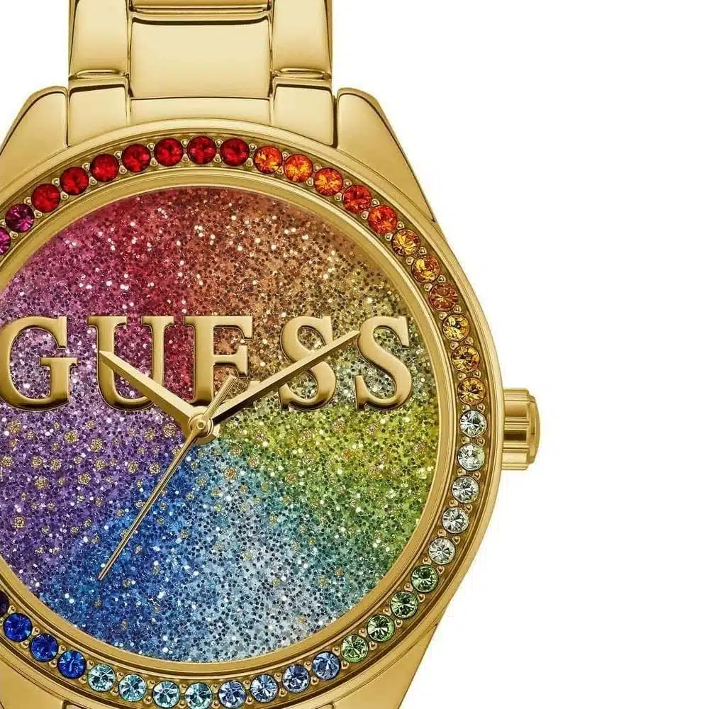 Original Guess Watch Glitter Girl for Women W0987L5 With Rainbow dial Metal Strap Gold color Belt Japanese Machine With packing Guess ( Box + Bag )