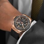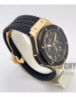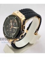 Hublot watches Big Bang Geneve Model in Egypt For Men with Black Dial and Black Rubber Color Strap Rose Gold Case
