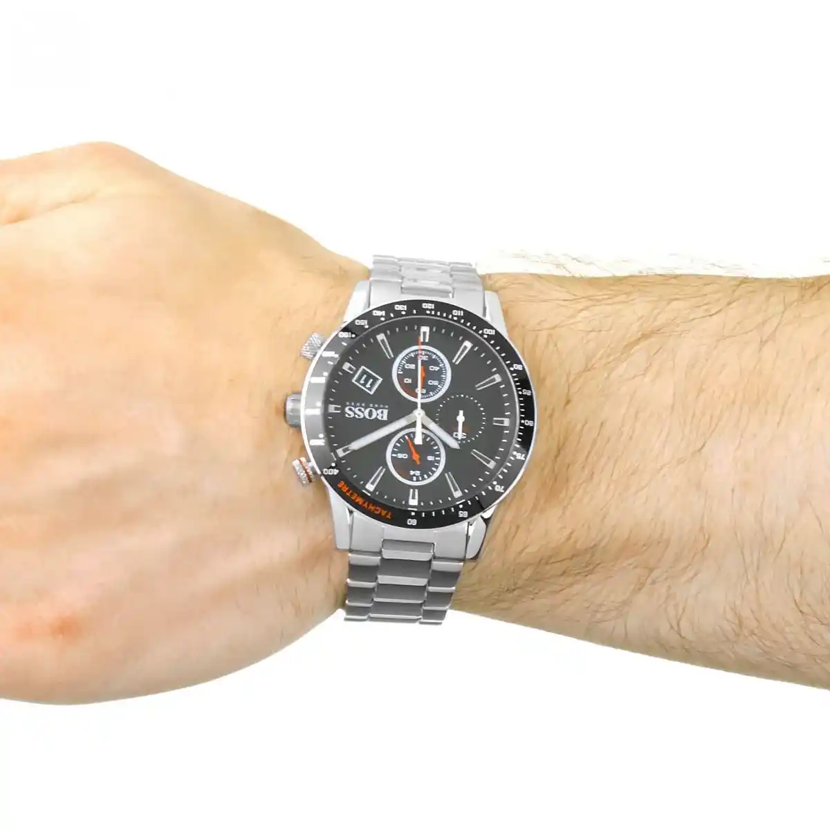 Original Hugo Boss Watch Rafale For men In Egypt 1513509 Black dial Silver Metal Strap . With Original packaging Hugo Boss Box + Bag