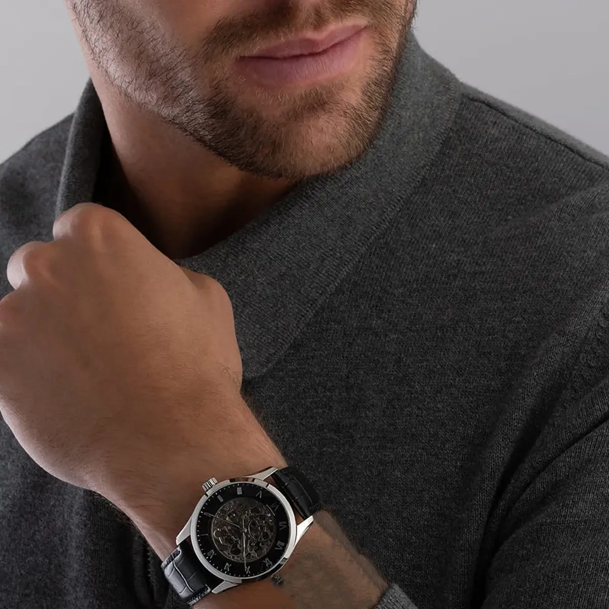 - High-quality materials: stainless steel, genuine leather, scratch-resistant glass