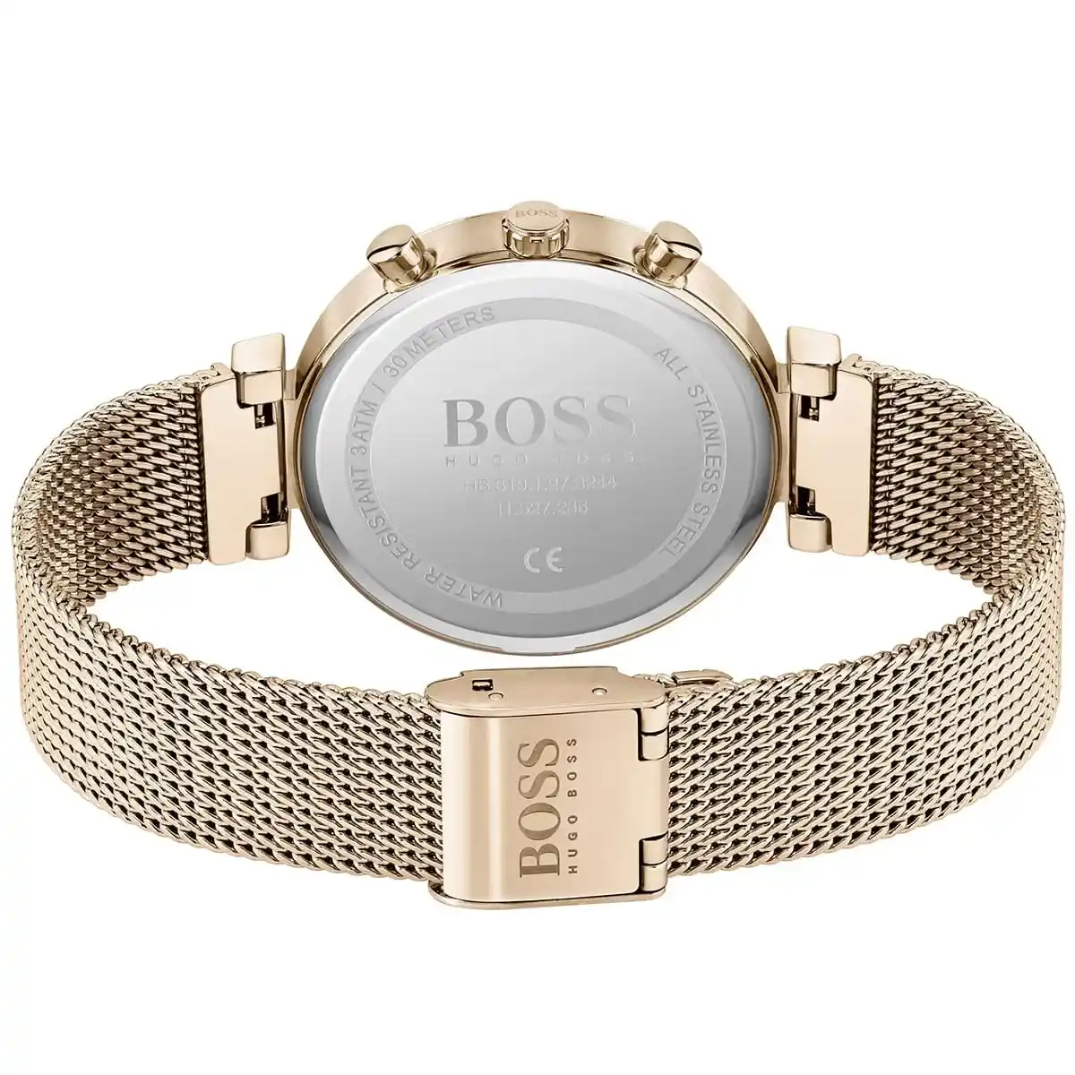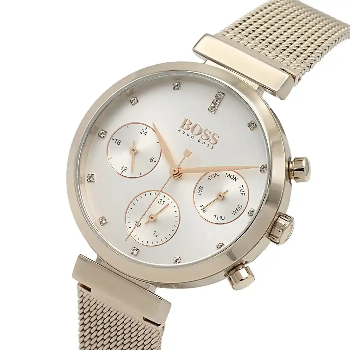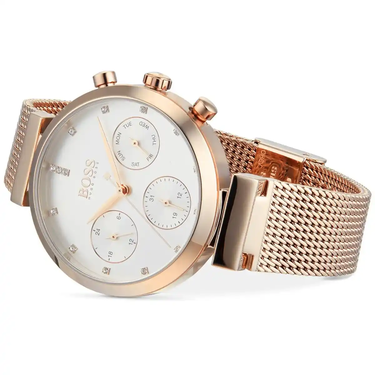 Original Hugo Boss Watch Flawless For Ladies In Egypt 1502553 Silver dial Rose Gold Metal Mesh Strap . With Original packaging Hugo Boss Box + Bag
