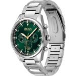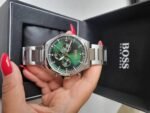 Original Hugo Boss Watch For men In Egypt Pioneer 1513868 With Green dial Silver Metal Strap With packing Boss Box + Bag