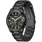 Original Hugo Boss Watch For Men Strike For Men 1514291 Black dial Black Metal Strap .