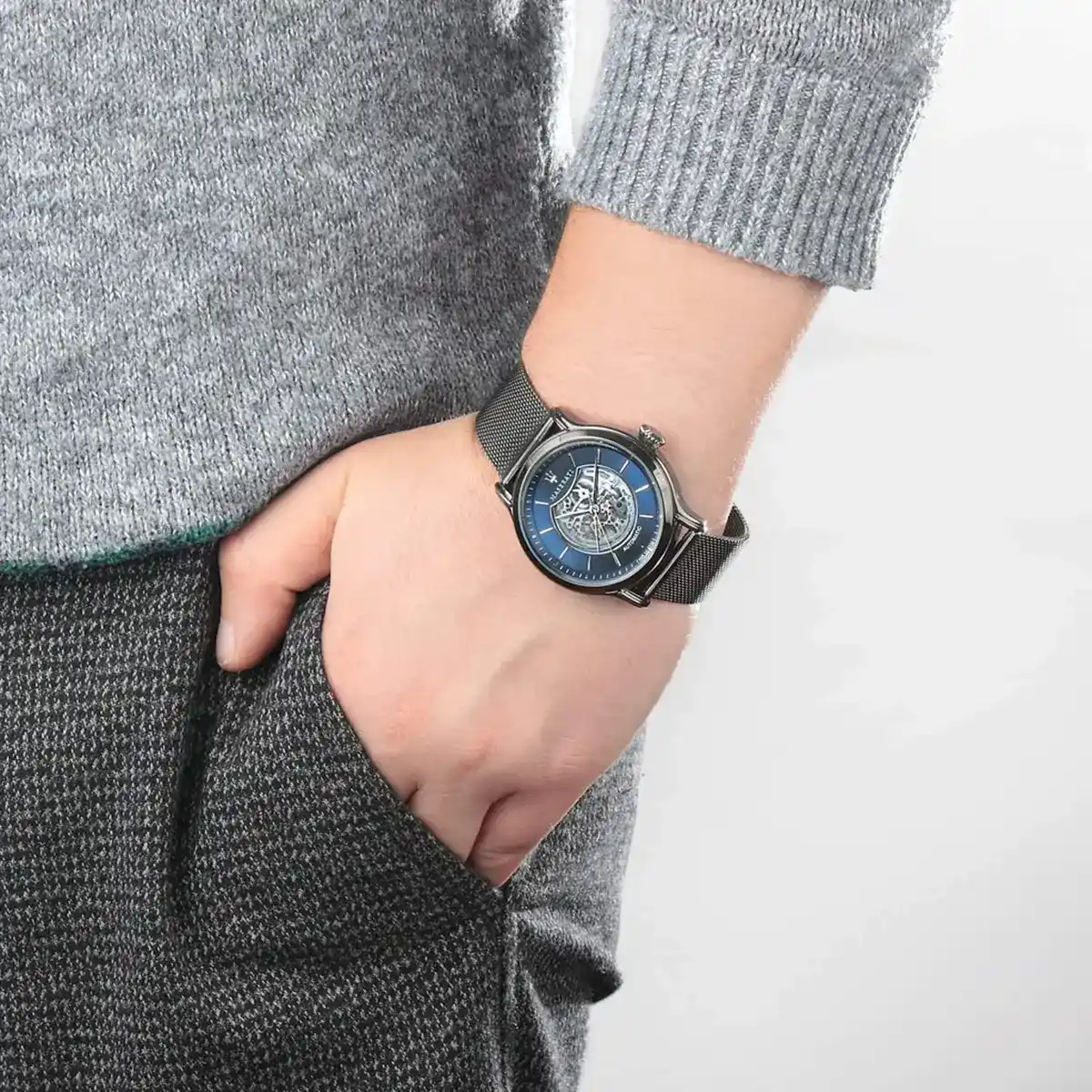 Original Maserati Watch For men In Egypt Epoca Automatic R8823118002 Blue Dial Grey Metal Mesh Strap . With Original packging Maserati Box + Bag