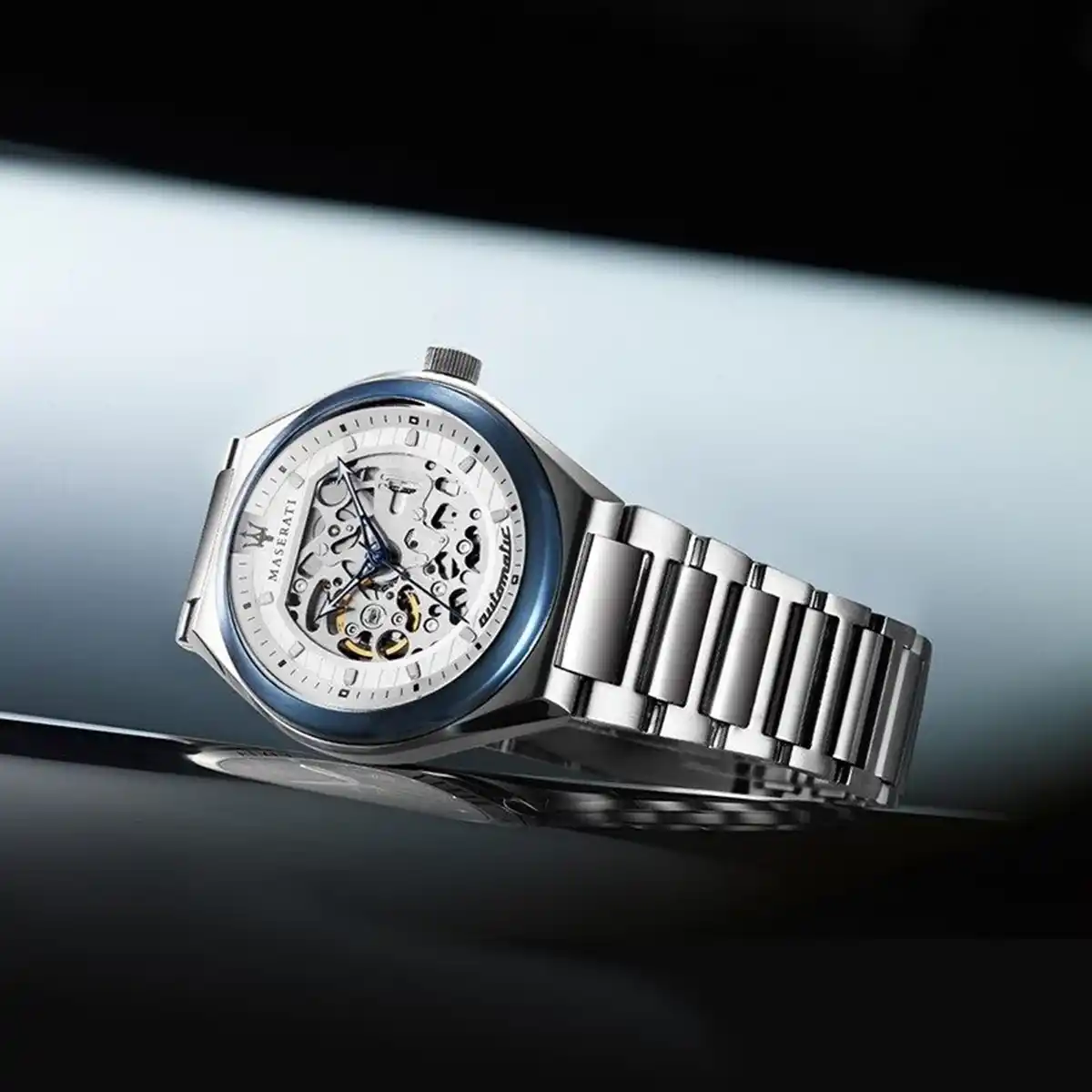 Original Maserati Automatic Men’s Watch In Egypt Triconic R8823139002 White Dial , Silver Metal Strap .