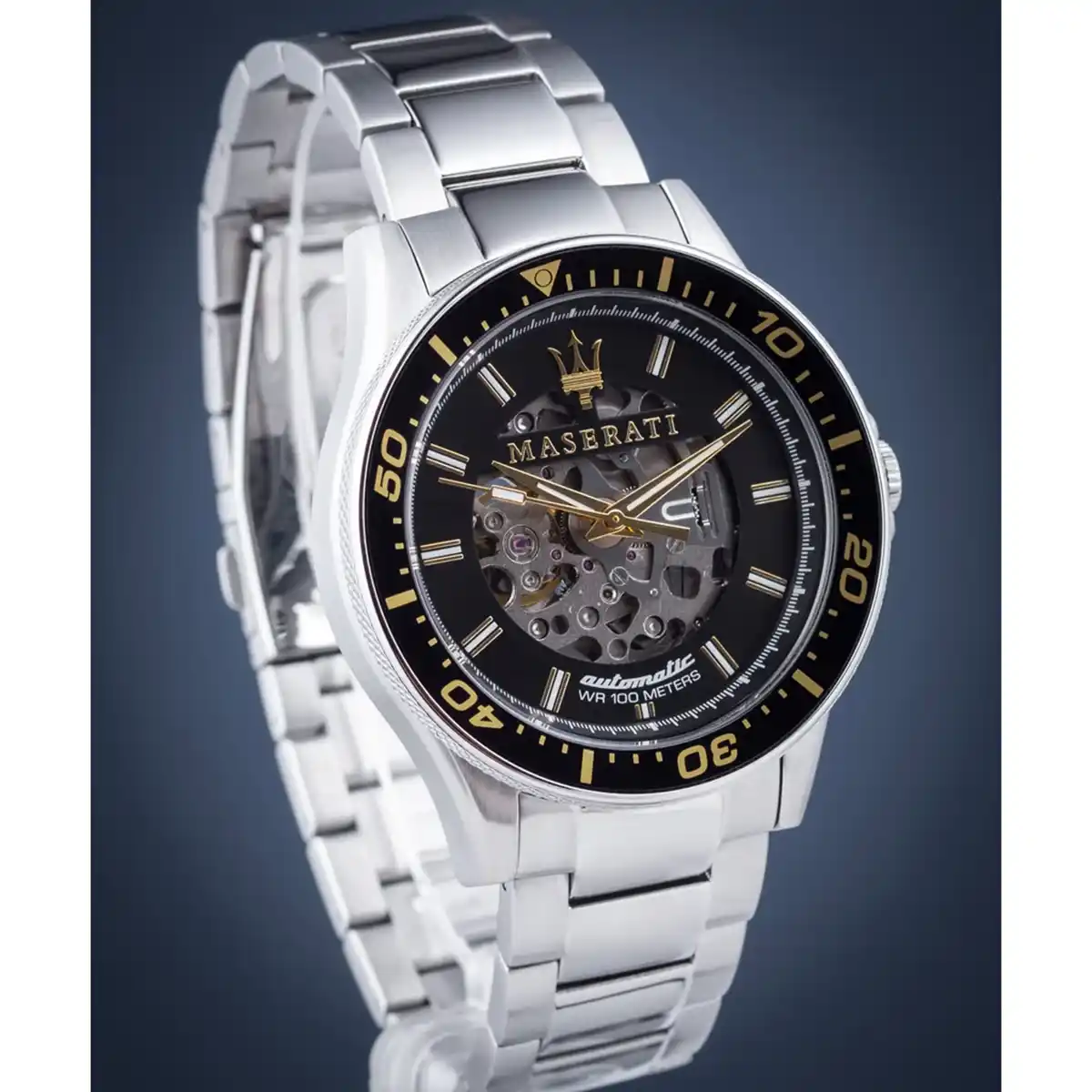 -5%Original Maserati Automatic Men’s Watch In Egypt Sfida R8823140002 Black Dial , Silver Metal Strap .