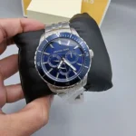 Original Michael Kors Watch Cunningham For Men MK7153 Blue dial Silver Metal Strap Color . Japanese Machine With Original packing MK Box + Bag