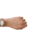 The Michael Kors Suri MK4879 women’s watch is an elegant model that combines timeless style with functionality. Its envelope is made of silver-colored stainless steel, which gives it a distinctive character. The dial, also in gold tones, is covered by mineral glass, which makes the watch look modern and striking. The width of the envelope, which is 24 mm, fits perfectly with the delicate design of this model