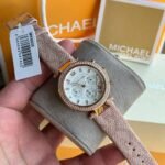 Original Michael Kors Watch For Women MK6935 Pink dial White Polyurethane Chloride Strap . Japanese Machine With packing MK Box + Bag