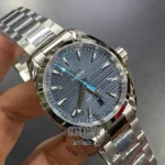 Omega SeaMaster Aqua Terra Steel Automatic watch For Men Silver Metal Strap Lite Blue Dial Automatic