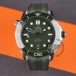 Omega watch Seamaster Diver Co‑Axial Master Green Rubber Strap Color Green Dial Automatic With Gift Box