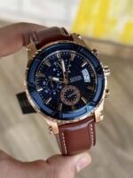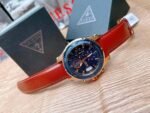 Original Guess Watch Pinnacle for Men W0673G3 With Blue dial Leather Strap Brown color Belt Japanese Machine With packing Guess ( Box + Bag )