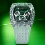 Original Guess Watch Phoenix for men GW0499G8 With Green dial Rubber Strap Transparent color Belt . Japanese Machine With packing Guess  Box + Bag