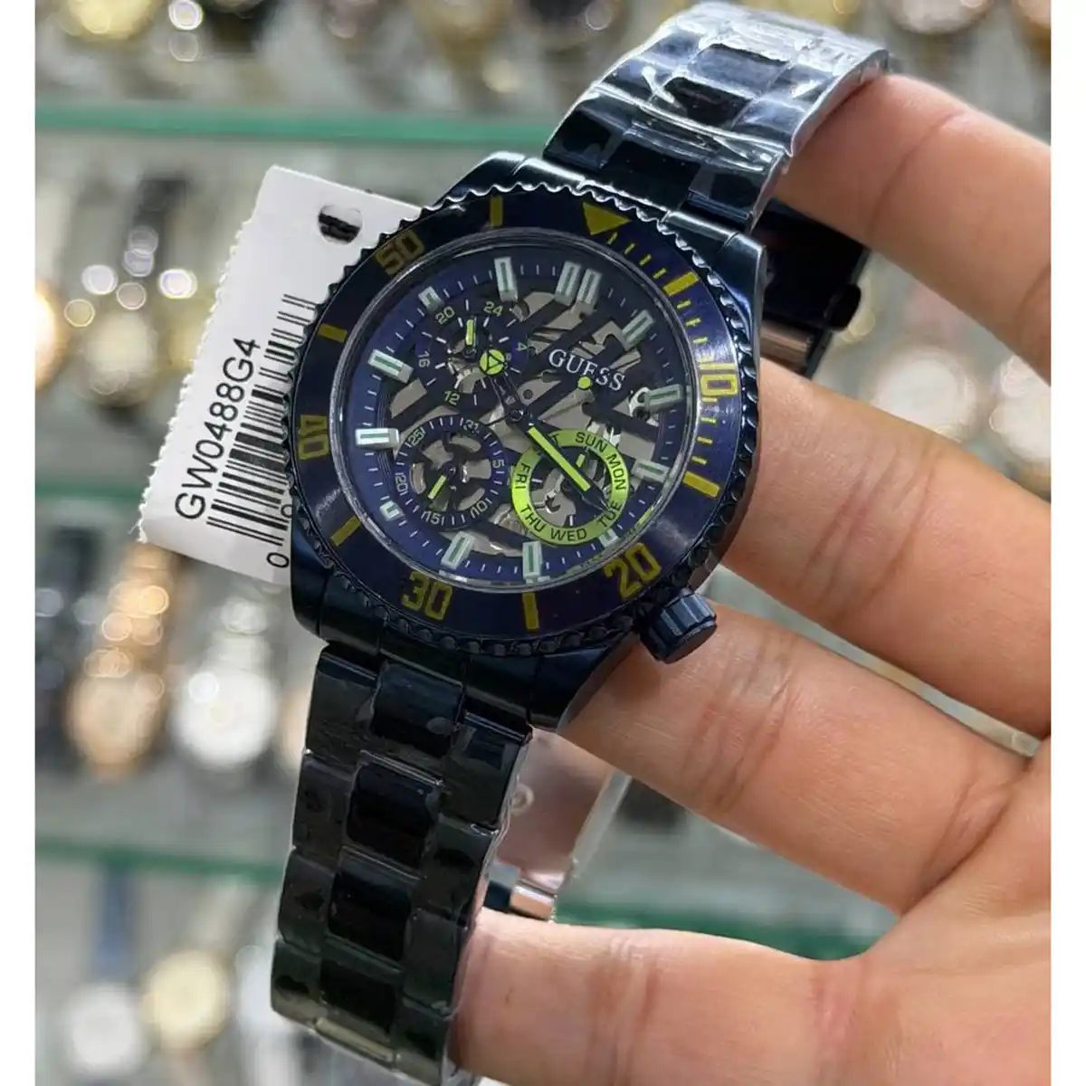 Original Guess Watch Axel for Men in Egypt GW0488G4 Navy Blue dial Navy Blue Metal Strap .