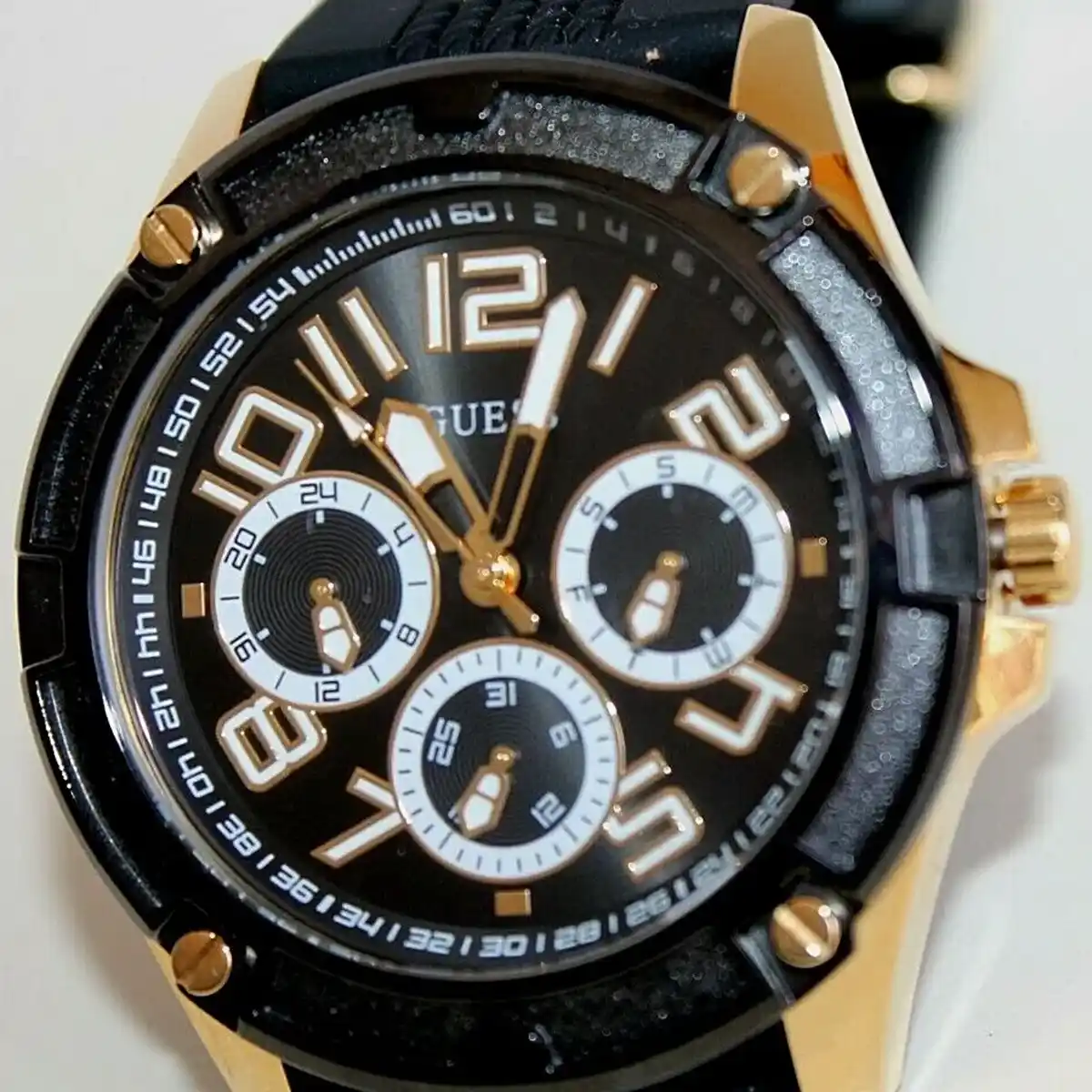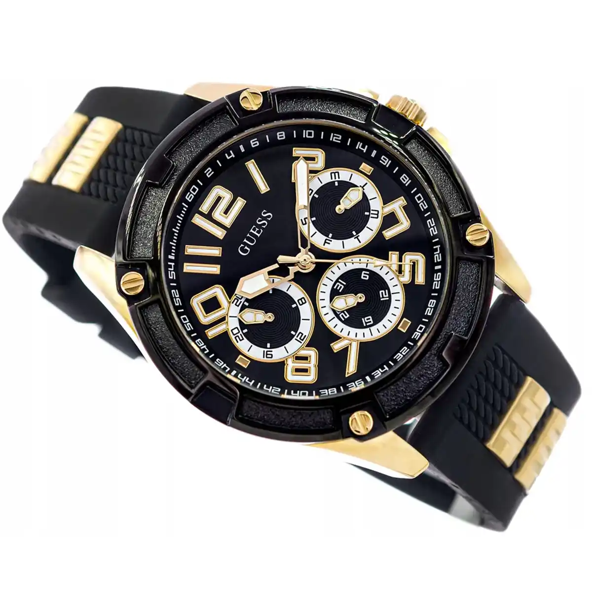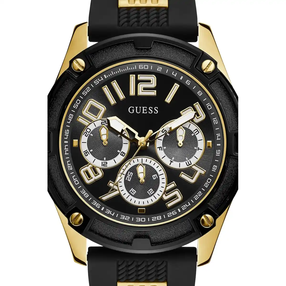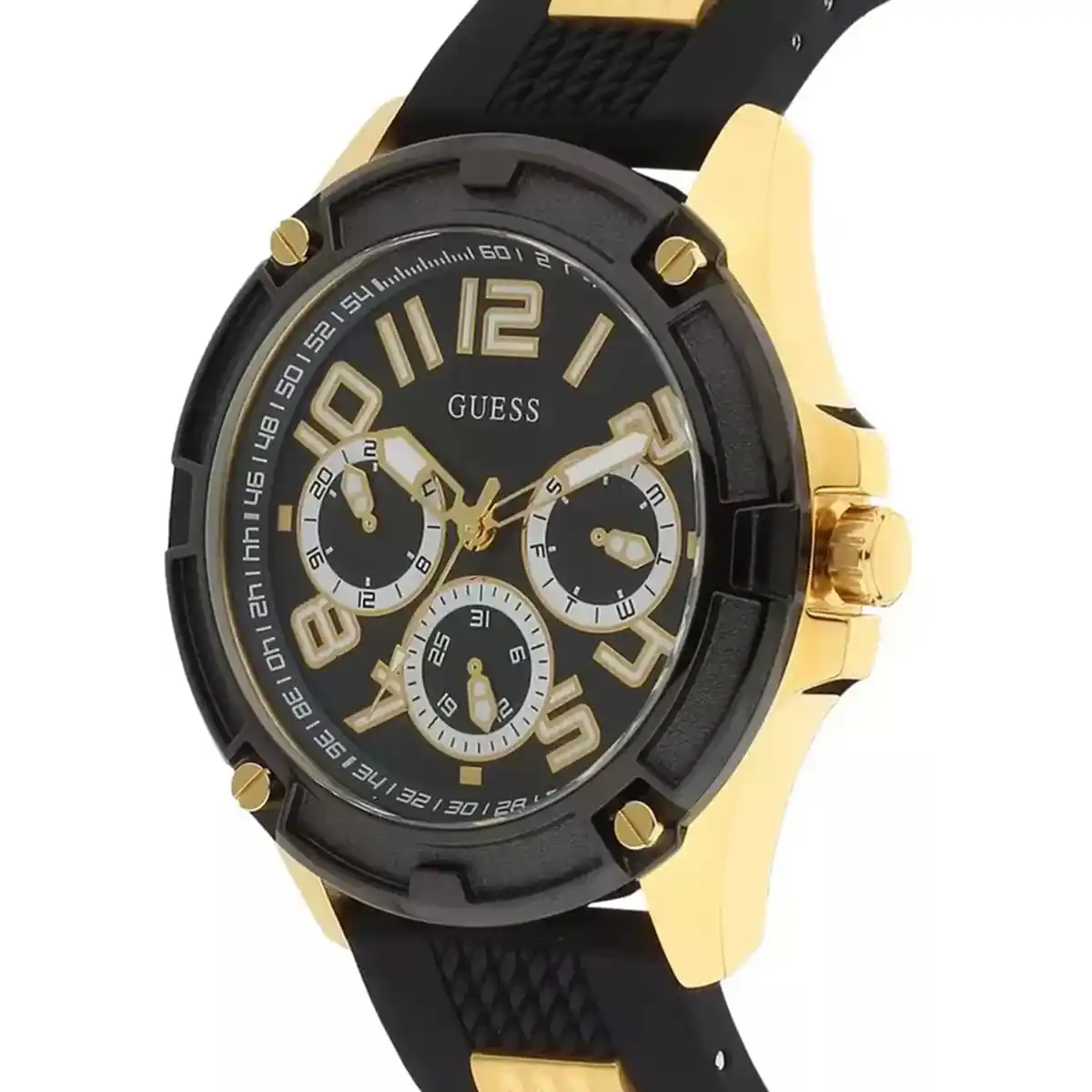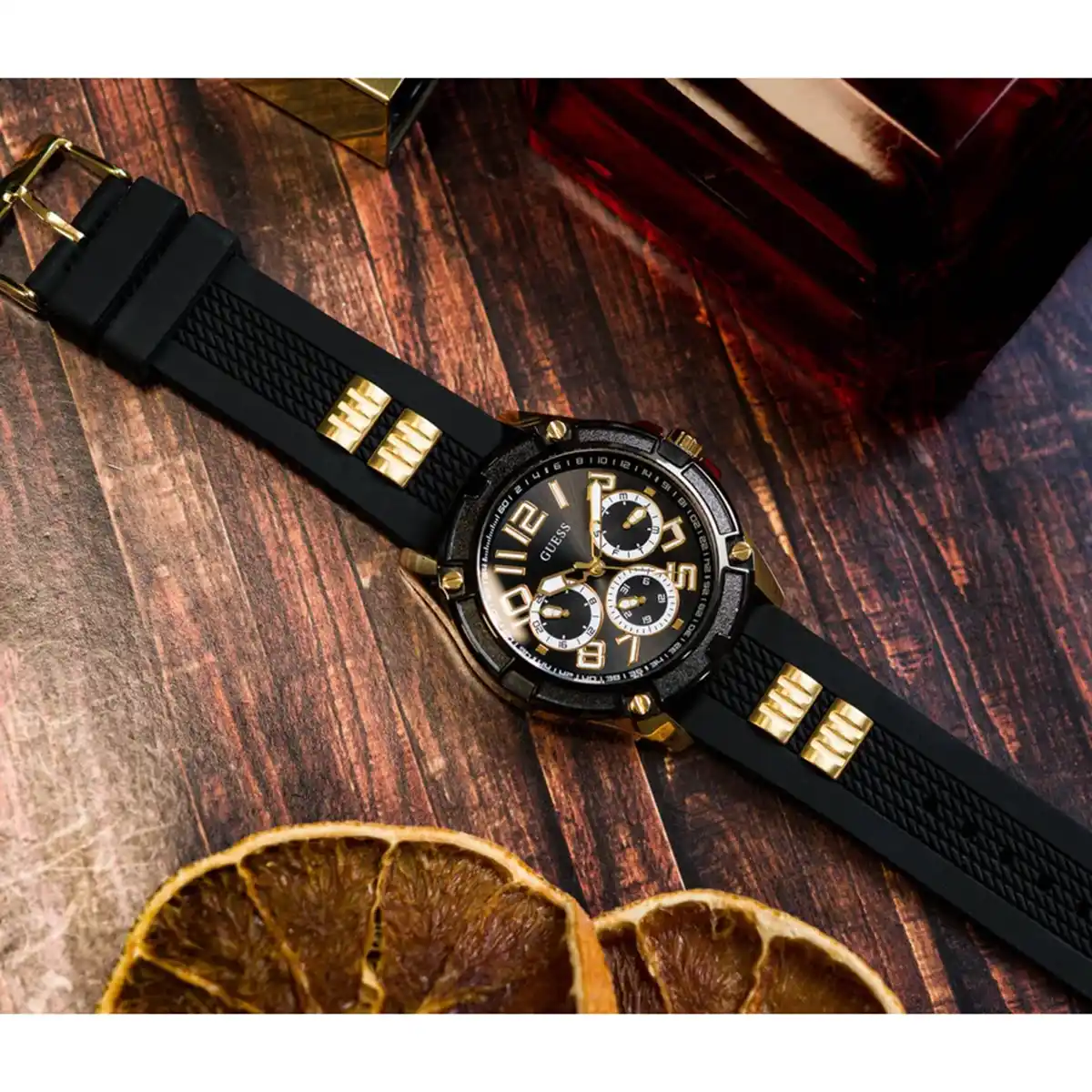 Original Guess Watch Delta for Men in Egypt GW0051G2 Black dial Black Gold Rubber & Metal Strap .