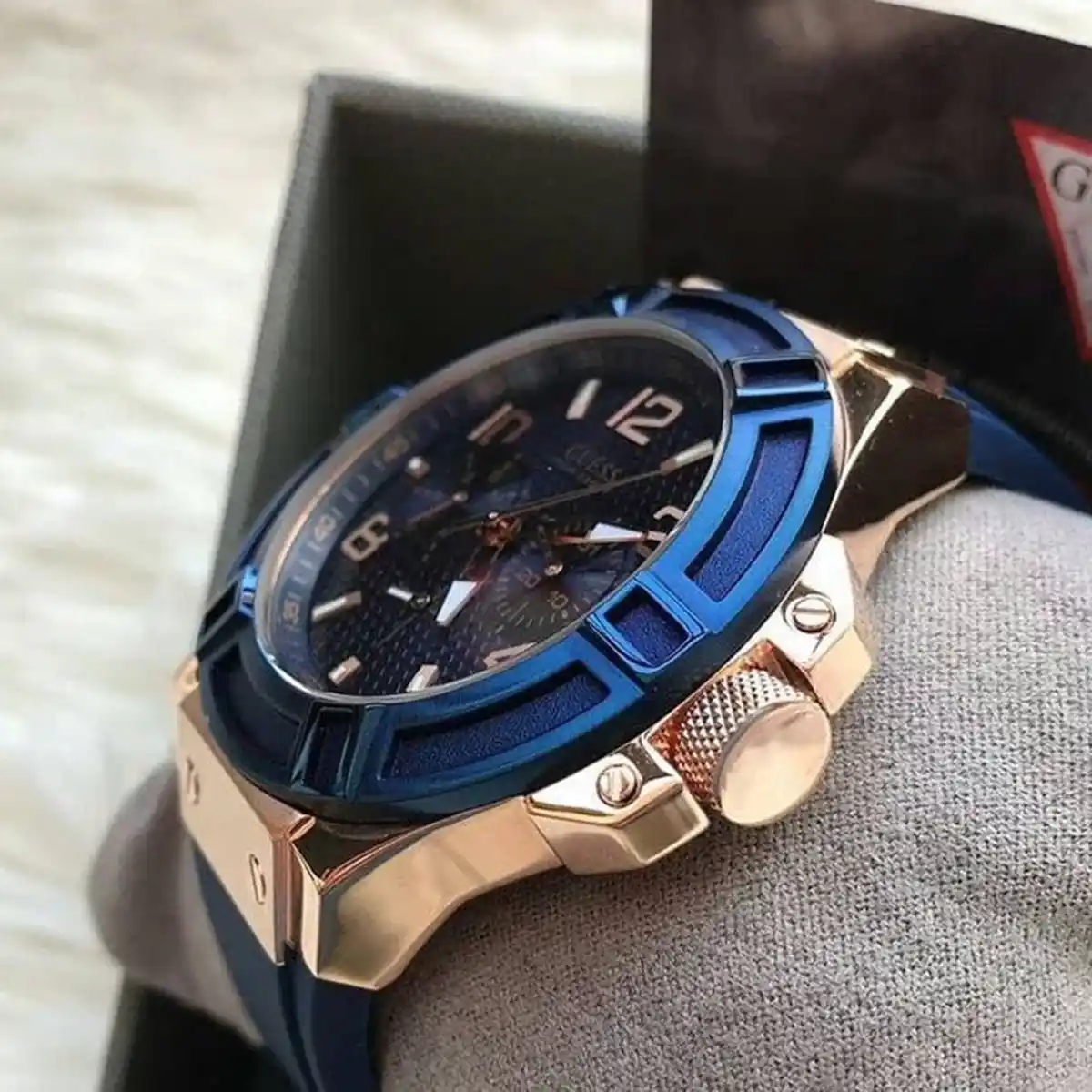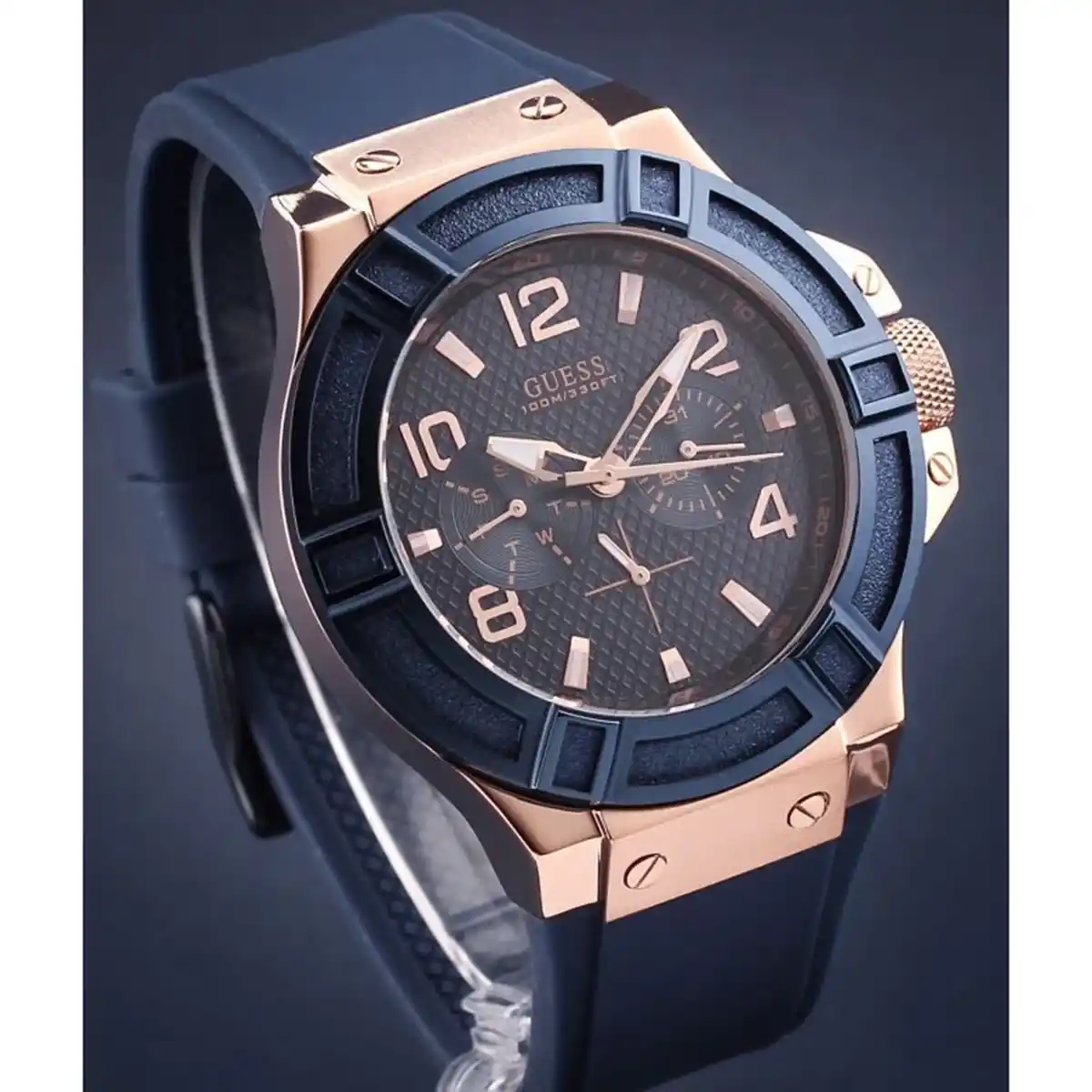 Original Guess Watch Rigor for Men in Egypt W0247G3 Blue dial Blue Rubber Strap .