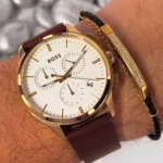 Original Hugo Boss Watch For men In Egypt Dapper 1513926 With White dial Brown Brown Strap . With packing Boss Box + Bag