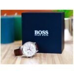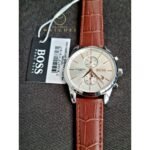 Original Hugo Boss Watch For men In Egypt Jet Chronograph 1513280 With Silver dial Brown Leather Strap With packing Boss ( Box + Bag )