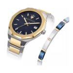 Original Maserati Watch For men In Egypt Stile R8853142008 With Blue dial silver & gold Metal Strap . With packing Maserati ( Box + Bag )