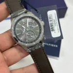 -10%Original Tommy Hilfiger Watch For men In Egypt Austin 1791637 Grey dial Brown Leather Strap . With packing Tommy Hilfiger Box + Bag