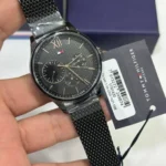 -7%Original Tommy Hilfiger Watch For men In Egypt Damon 1791420 Black dial Black Metal Strap . With packing Tommy Hilfiger Box + Bag