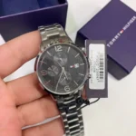 Original Tommy Hilfiger Watch For men In Egypt Liam 1710356 Grey Black dial Silver Metal Strap . With packing Tommy Hilfiger Box + Bag