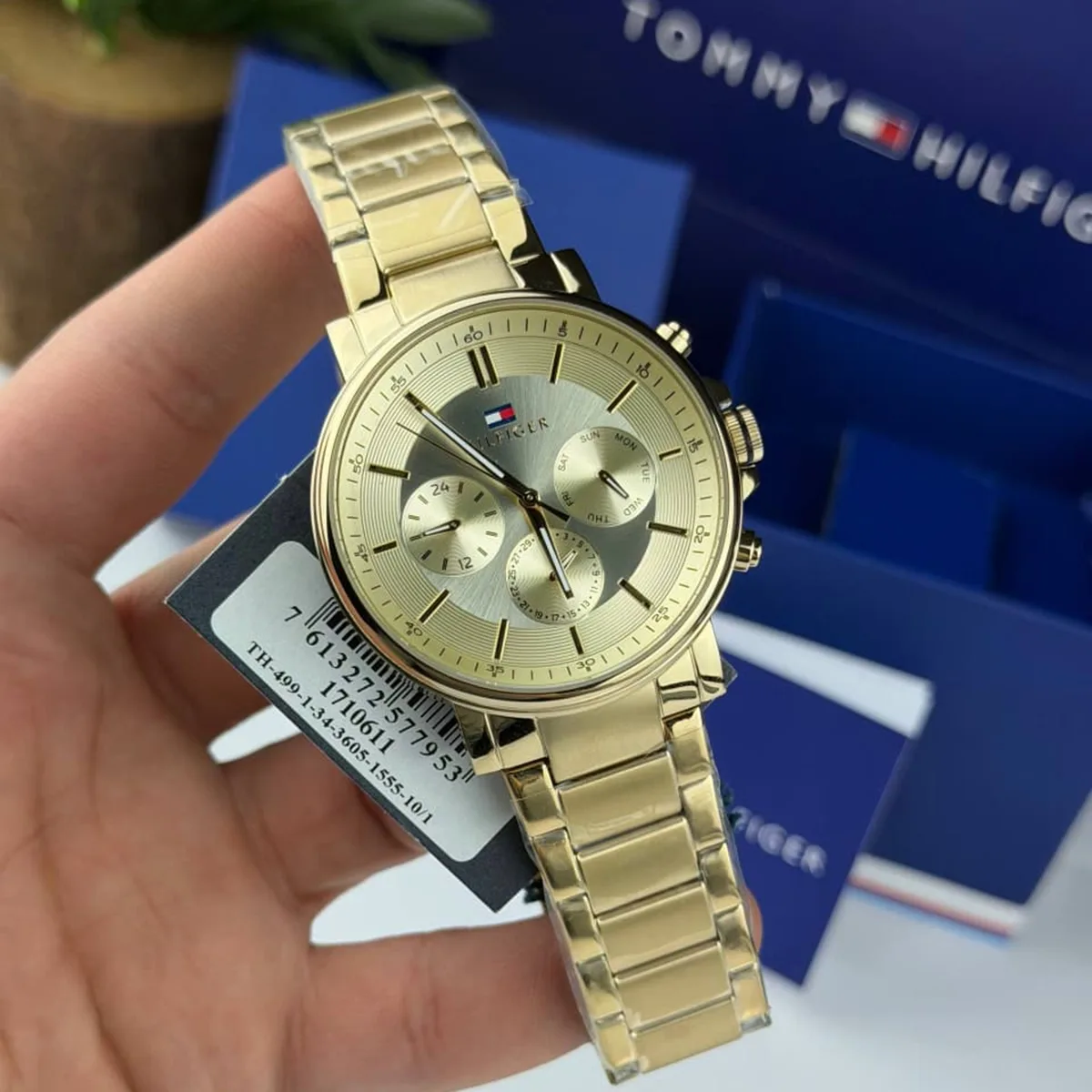 Original Tommy Hilfiger Watch For men Tyson 1710611 Gold dial Gold Metal Strap .