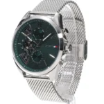 Original Tommy Hilfiger watch for men in egypt Baker 1710647 Green dial Silver Metal Mesh strap