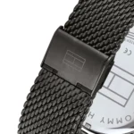 The black dial adds a refined and elegant touch, complemented by white hands for clear readability, and finished with the original Tommy Hilfiger logo for a premium look.