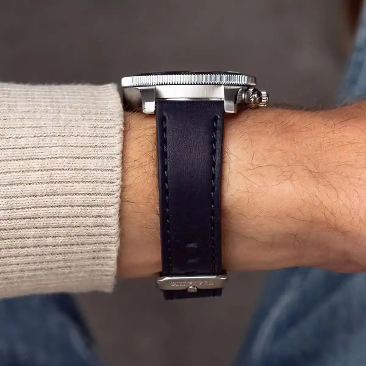 Original Tommy Hilfiger watch for men Th85 1792187 with Lite Blue dial Navy Blue Leather strap 50m Water Resistance