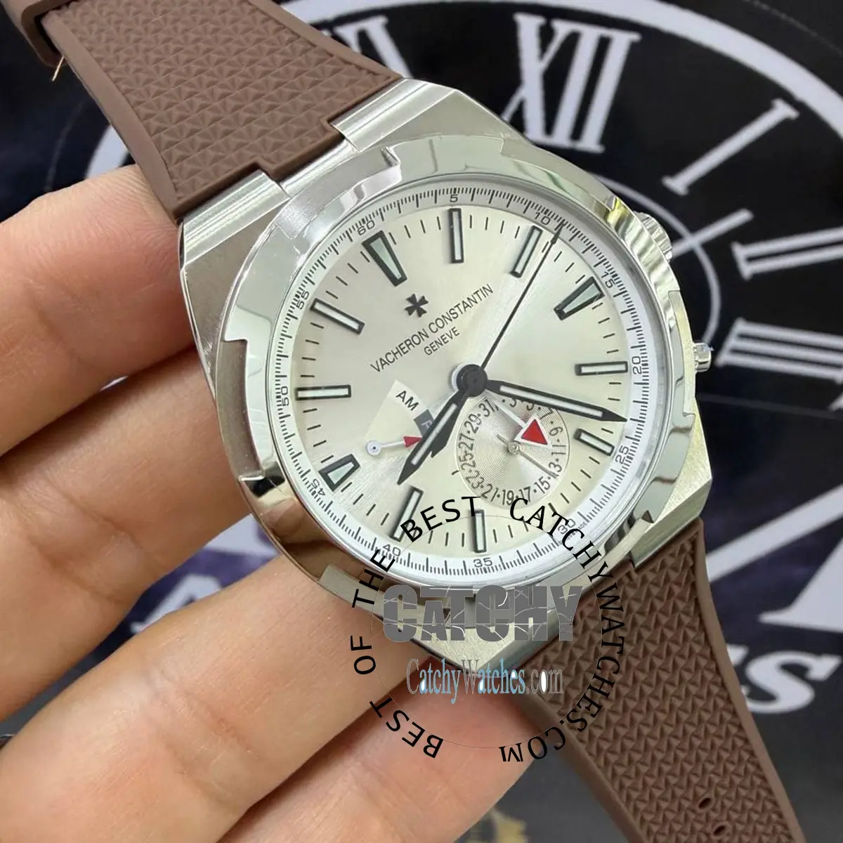 Vacheron Constantin Overseas Automatic Watch In Egypt Silver dial Brown rubber Strap Silver Case Color
